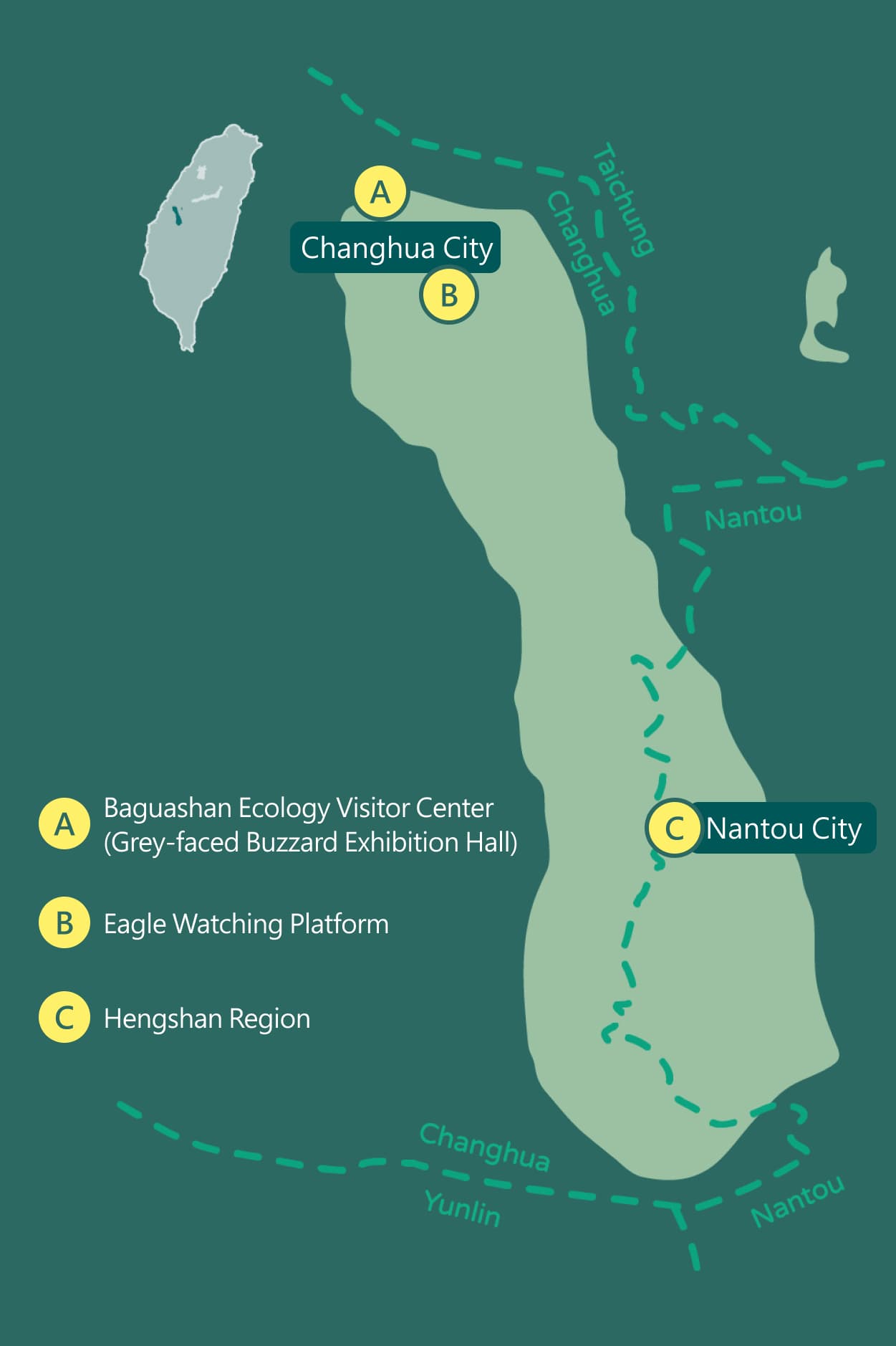 The annual ecological event "Baguashan Eagle Watching" is an eagle appreciation activity held in Baguashan from March to April every spring. It is named after the rare bird, the grey-faced buzzard. The activities also include ecotourism, markets, and guided tours, promoting the importance of ecological conservation while experiencing the fun of eagle watching.