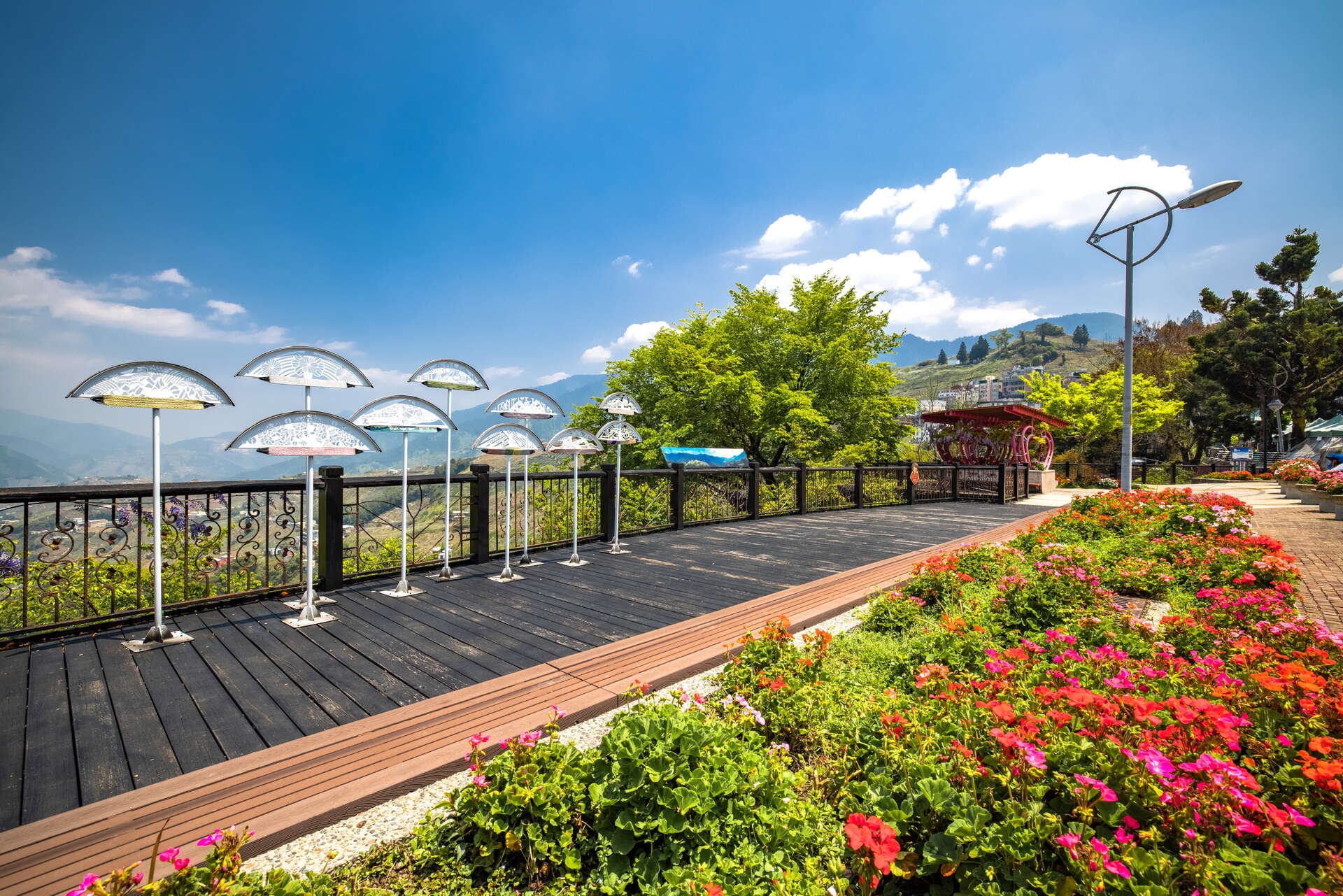 Climbing up to the observation deck, you can see breathtaking mountain views and the houses of the Sqoyaw Tribal Village and Songmao Tribal Village, nestled on the mountainside. Looking down, you can spot Lishan's loving heart grass art below. Many public art and floral arrangements are also adjacent to the observation deck!