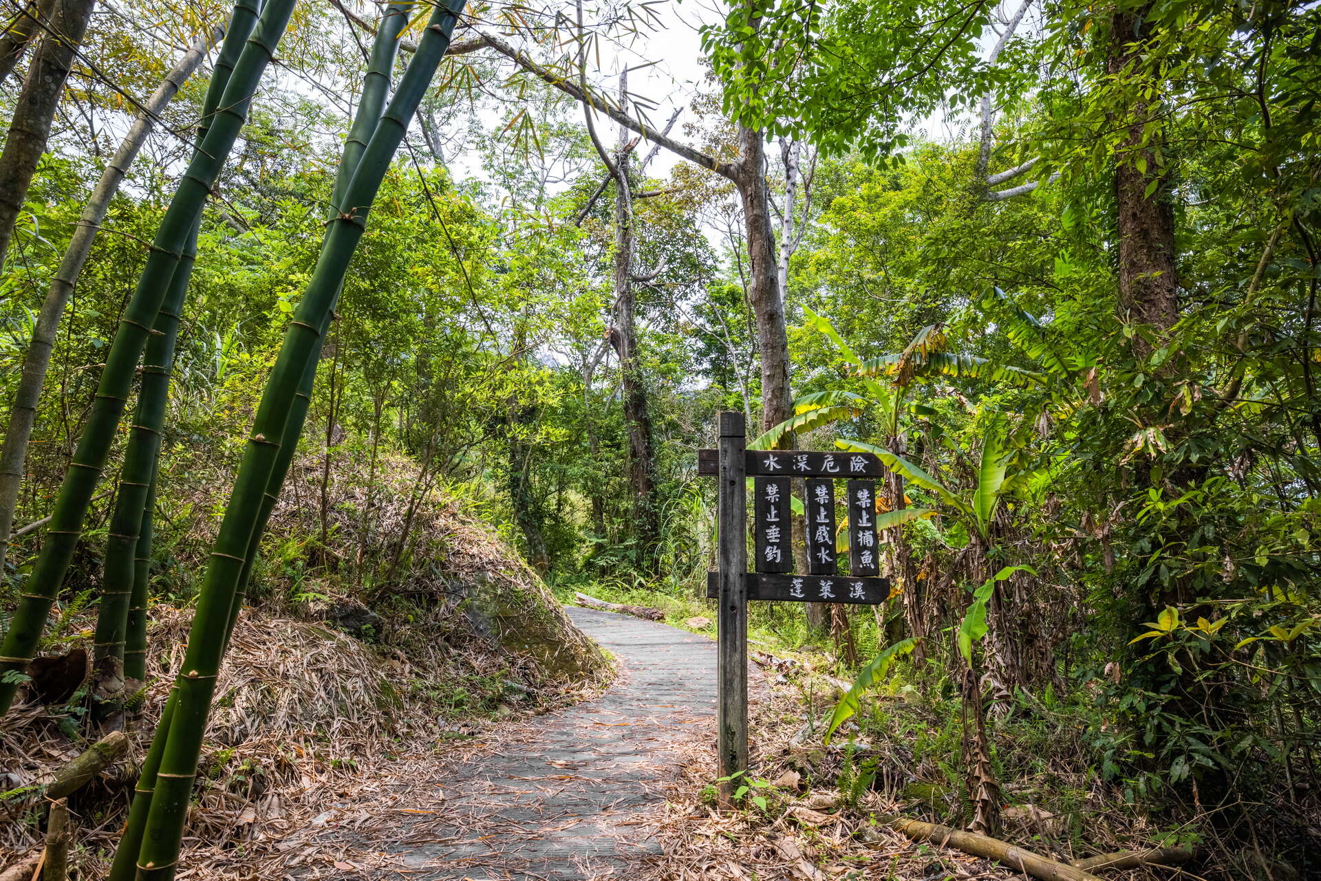 The Penglai River Ecology Trail in Nanzhuang is known for its rusticity and originality. This area is completely natural with only a few bridges made out of bamboo and simple rock and wooden steps. Alongside these paths are rich ecological resources--plants and animals, birds and insects. In the streams you can see unique species of aquatic life such as the Ku hua (Varicorhinus barbatulus), Taiwan stone minnow (Acrossocheilus paradoxus), and Yi chi hua (Candidia barbata), making this a very special place for fascinating ecological tours.