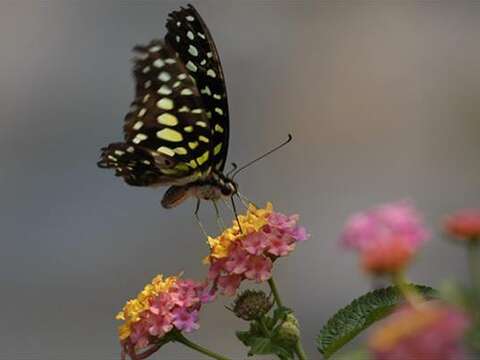 若您在中底海拔山區賞花期間,發現一隻翅膀帶著翠綠色斑紋,總是忙碌地振翅飛行而且移動快速的鳳蝶,那多半就是人稱鳳蝶中的戰鬥機-綠斑鳳蝶。一刻不得閒的他,甚至連採蜜時也是不停地抖動翅膀,快節奏讓人不禁也緊張了起來。