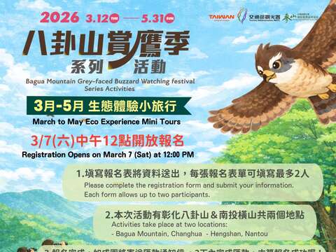 每年三月到四月春天期間,灰面鵟鷹由渡冬地北返過境八卦山,地區賞鷹活動至今已舉辦長達30年,活動辦理是為了長期守護灰面鵟鷹,提倡宣導生態保育觀念。