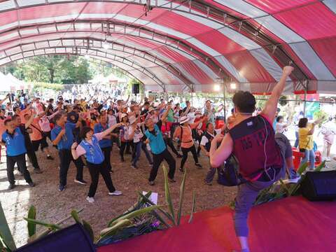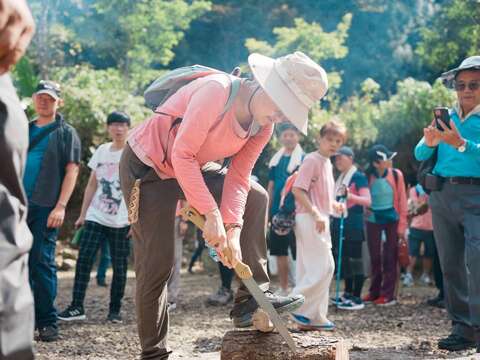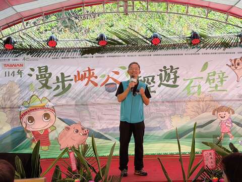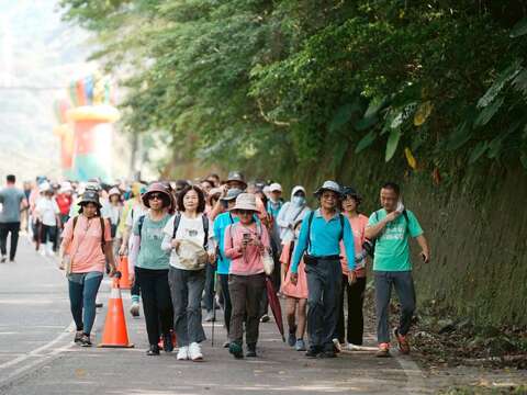 在苗栗南庄石壁部落舉辦登山健行活動,在鳴炮、撒花中,歡樂啟程,欣賞山巒、雲霧之美。