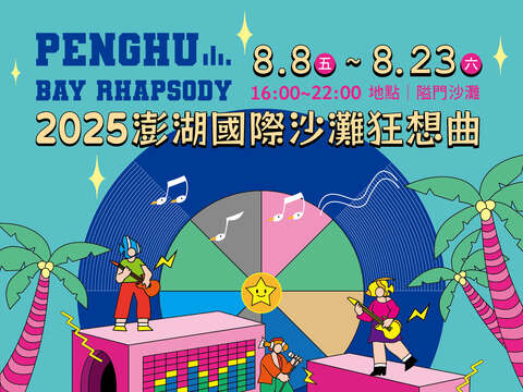 「2025澎湖國際沙灘狂想曲」活動訂於114年8月8日至9日、15日至16日及23日於澎湖隘門沙灘舉辦,歡迎民眾參加。