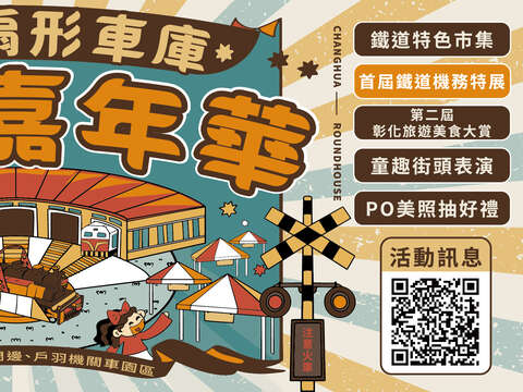 本處強調,扇形車庫不僅是彰化的文化象徵,更是推動永續旅遊的重要節點。本次鐵道嘉年華希望透過園區「空間重塑」及「視覺調整」,除視覺衝擊外,也帶給民眾兼具文化深度與旅行樂趣的全新體驗。本處誠摯邀請全國民眾,本週末到彰化拍火車、吃美食、逛市集、抽好禮,感受百年扇庫與城市新樣貌交織出的冬季旅遊魅力。更多活動詳情請至本處官網或臉書粉絲專頁「參山國家風景區管理處」查詢。