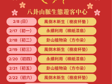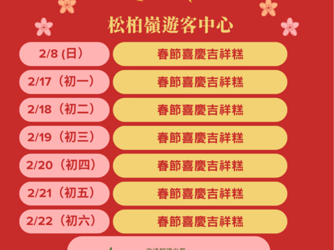 一、活動時間:115年2月8日、2月17日至2月22日(初一至初六)