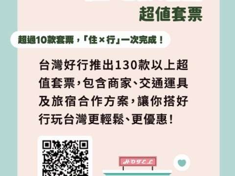 連續假期旅遊人次增加,多加利用大眾運輸工具出遊,讓旅程更順暢,「台灣好行」推出超過130款超值套票,包含商家、交通運具及旅宿合作方案,讓旅客能夠「住×行」一次完成。
