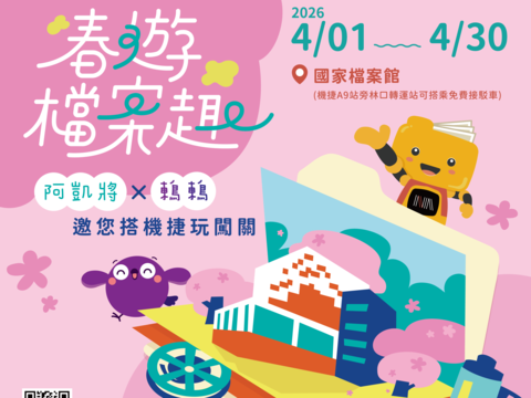 春暖花開,正是出遊好時機!國家檔案館聯手桃園捷運公司4月推出「春遊檔案趣—阿凱將×鶇鶇邀您搭機捷玩闖關」主題活動,由國家檔案館吉祥物-阿凱將(取自檔案英文Archives諧音)邀請桃園捷運吉祥物-鶇鶇(ㄉㄨㄥ ㄉㄨㄥ)來闖關,帶領大家用「大人需要思考,小孩也能理解」的輕鬆趣味視角,探詢展覽與展件的驚喜與樂趣,全齡皆適合,歡迎大家跟隨鶇鶇腳步來國家檔案館實地闖關挑戰,兩位還精心準備了必收限量聯名好禮要送大家🎁!