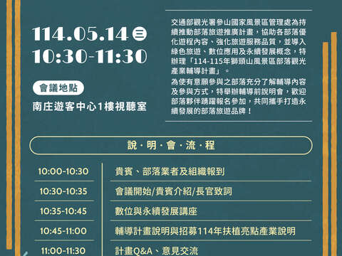 📣這場 輔導前說明會 誠摯邀請南庄在地部落朋友們來參加