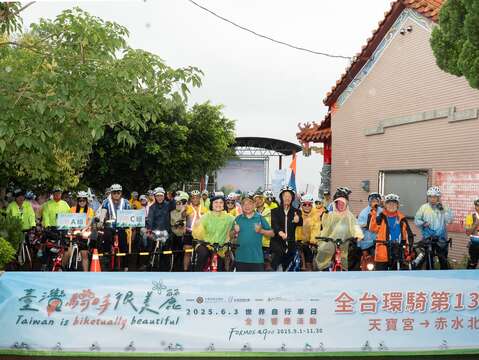 為響應世界自行車日活動,交通部觀光署今(3)日盛大舉辦「2025世界自行車日全台響應活動」,全台46條自行車環島路線同步開騎,並透過單車APP軌跡拼出單車地圖,共同倡議綠色低碳出行。本處今年號召百位車友,挑戰轄內2條人氣路線「139縣道經典線」與「卦山三鐵線」,一早雖然中部下起陣雨,仍澆不熄車友們的熱情,在交通部觀光署黃荷婷副署長領騎下出發並邀請各界一同響應世界自行車日!