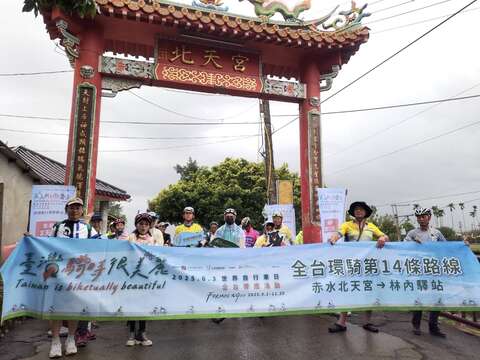 今(3)日一早,由觀光署黃荷婷副署長與本處副處長廖錫標擔任「139縣道經典線」領騎,處長曹忠猷處長鳴槍,帶領眾車友從芬園天寶宮出發,終點為彰化赤水北天宮,共計23公里。另外,「卦山三鐵路線」,則由本處洪英逸秘書擔任領騎,從彰化赤水北天宮出發,終點為林內驛站,計20公里。