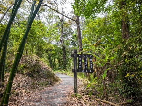 6.是日據時期運送軍事補給至山脊線防守砲台的重要通道,沿路風光明媚,長約700公尺,步行單程約需50分鐘,來回1個小時又40分鐘;因地勢較高,可遠眺南庄鄉東村、西村、江南村的山嵐美景,或欣賞蓬萊溪地形景觀和玉山紫金牛、烏心石等植物生態。
