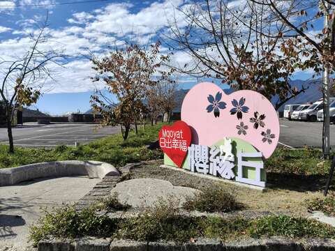 Mqoyat日出幸福-櫻緣丘位於原中正路停車場所在地,經過整建後,除了保留有充足的停車空間外,還規劃有觀景平台、櫻花步道以及以愛情為主題的各式藝術造景,且距離梨山賓館、梨山遊客中心等地僅3分鐘車程,非常適合旅行途中來此賞山景、賞櫻花,與心愛的人於此共享美好時光。