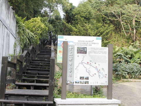 十二寮之由來,是因日治時期,此地為第十二座煉樟腦油的樟腦寮而得名,目前十二寮以觀光為主,不但可在此健行散步,騎自行車、用餐等都是不錯的選擇。步道長約2000公尺,坡度不高,但仍可在最高點上眺望平地的景觀,近幾年隨觀光產業的發達而重新修整,以石階、石子路為主,路程相當平緩,是條老少咸宜的步道。